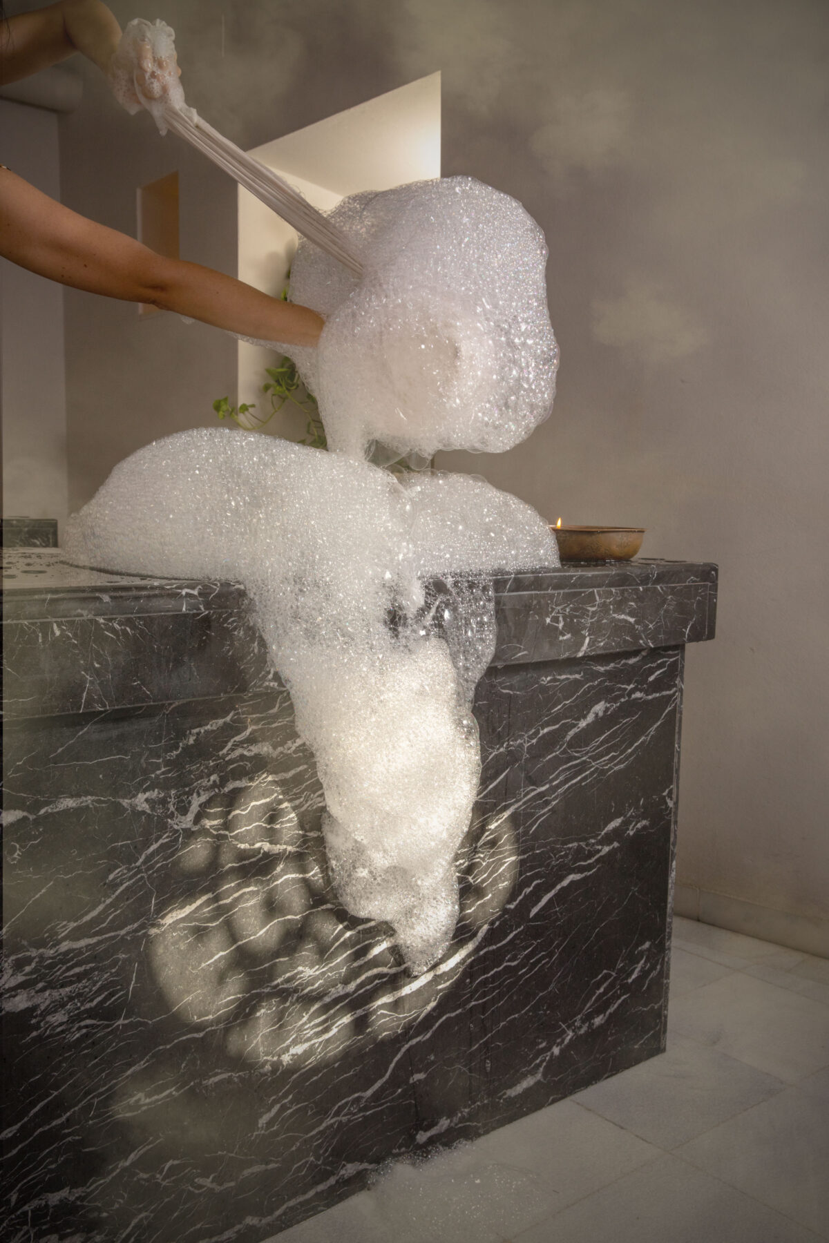 You only have to bring the swimsuit or bikini, the use of underwear is not possible. The entrance to the Hammam is barefoot and can bring pool shoes although its use is reserved for changing rooms. If you wish, you can buy some latex booties at the reception that will be worth to use them inside the Hammam.